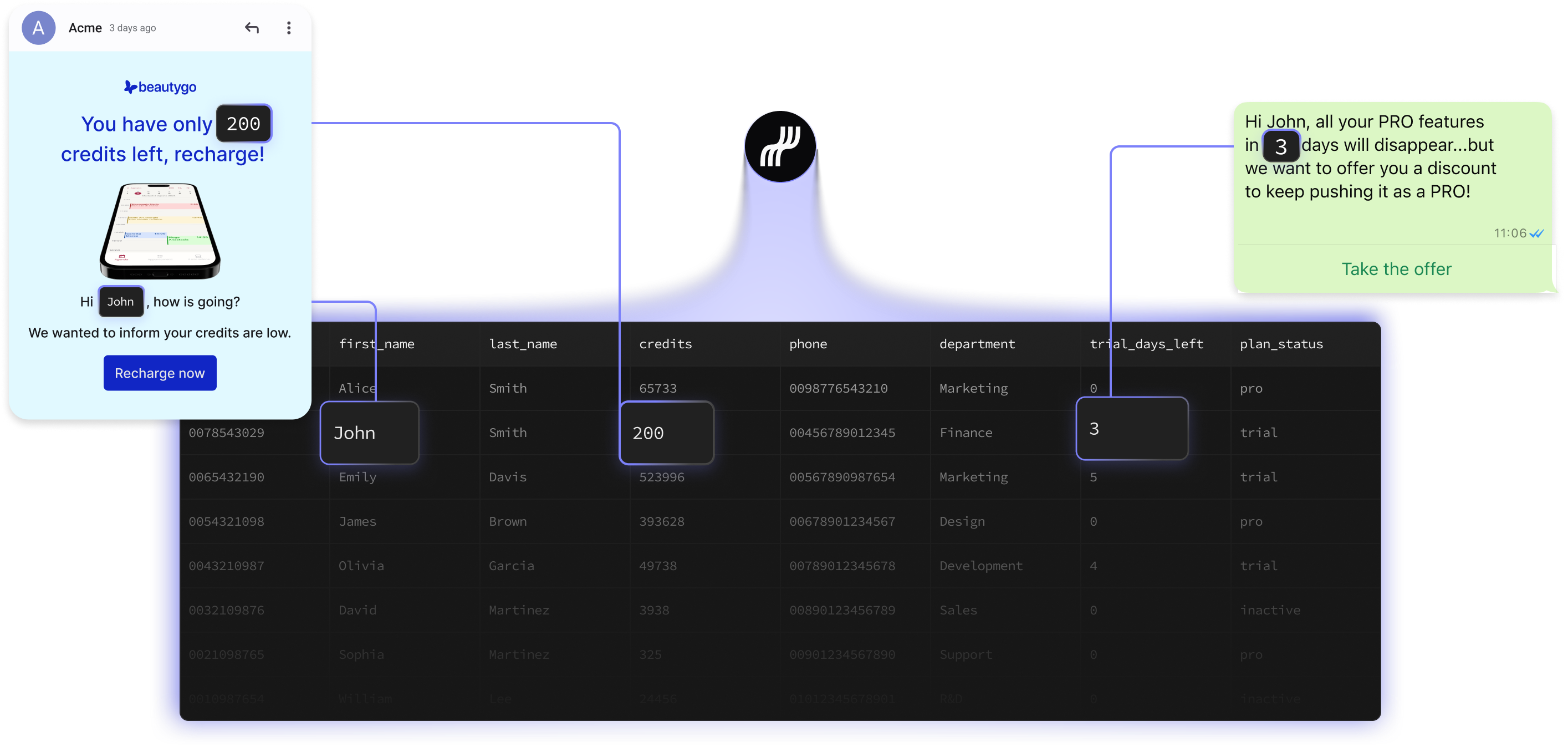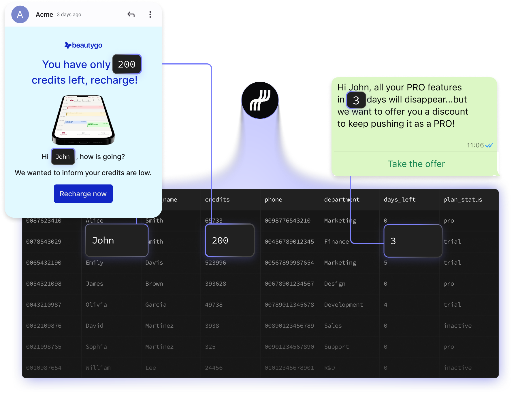 Trigger automations from Supabase events: new rows, updates, status changes and personalize with record data.